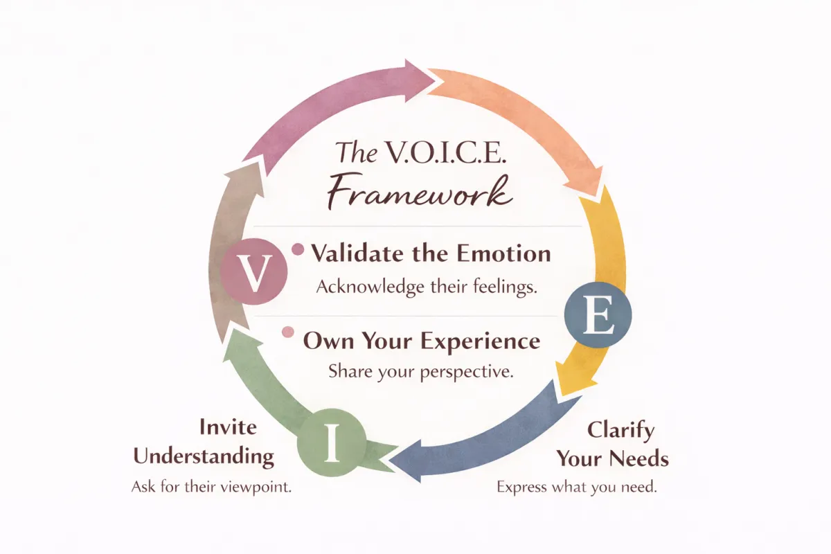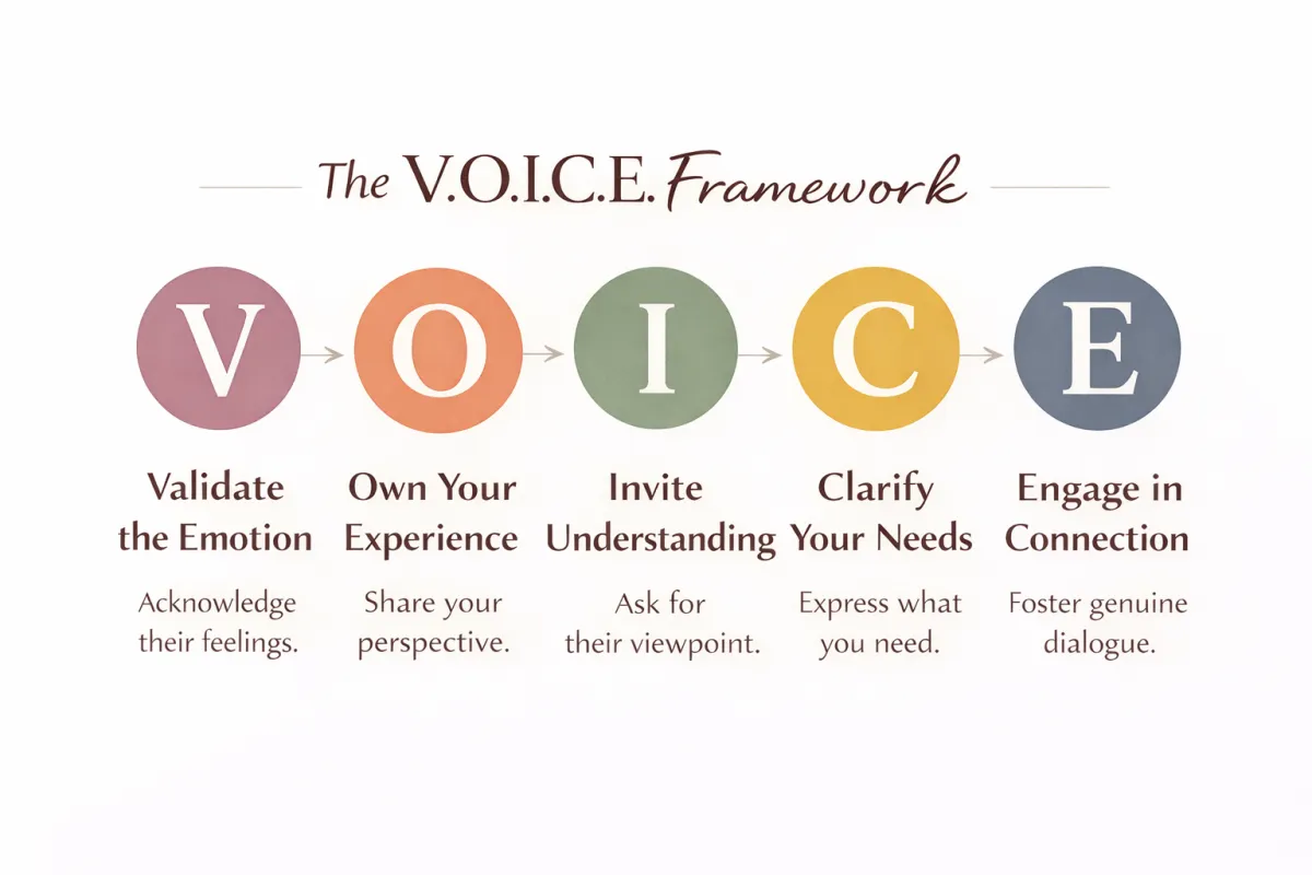 Instead of reacting emotionally or shutting down, you learn how to move through conversations with the V.O.I.C.E. Framework: